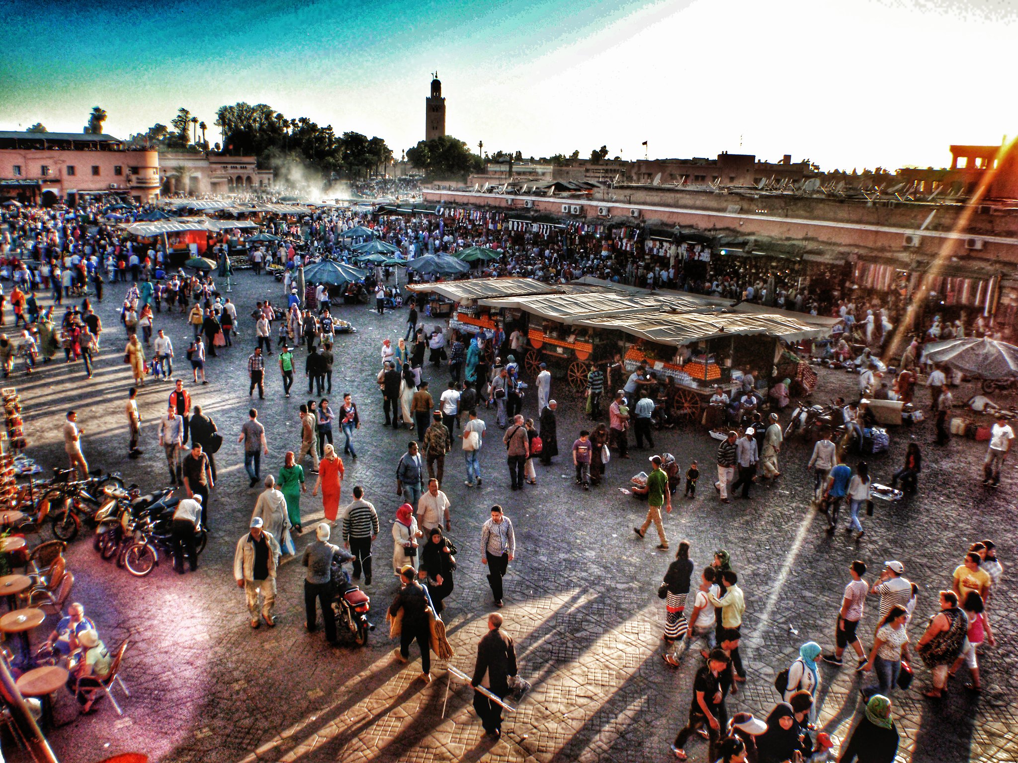 After breakfast, explore Marrakech with a local guide. Visit important monuments such as Bahia Palace and Ben Youssef Madrasa, then walk through the lively Medina and traditional souks full of colors and local products. Continue to Jemaa El Fna Square, the heart of the city, and see the Koutoubia Mosque from outside. In the afternoon, visit Majorelle Garden and drive through Gueliz, the modern part of Marrakech. Return to your riad for overnight stay.